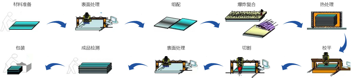 研制開(kāi)發(fā)出鈦/鋼、不銹鋼/鋼、鋁/鋼等五十多種不同規(guī)格的金屬?gòu)?fù)合材料,形成了稀有、有色、黑色金屬?gòu)?fù)合材料產(chǎn)品系列